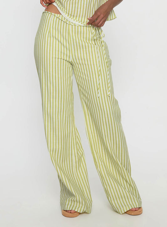 With Pleasure Tie Side Pant Green / Blue Stripe