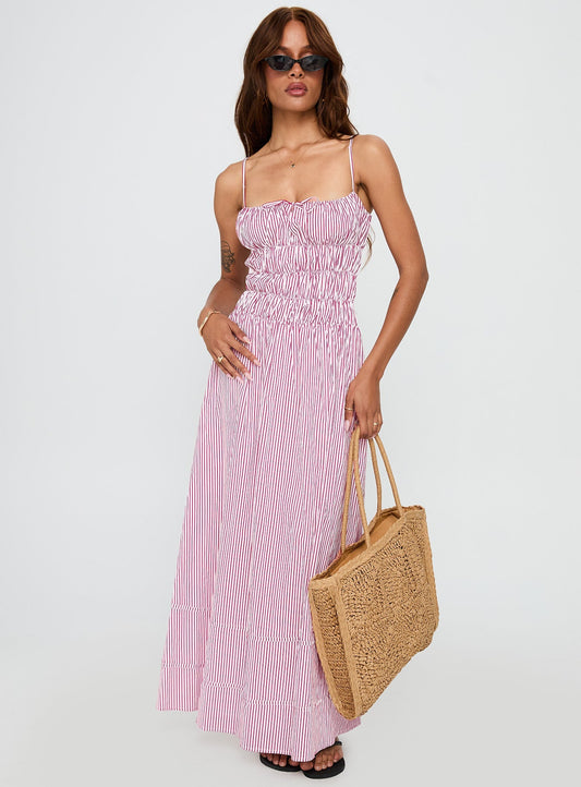 Loralei Shirred Maxi Dress Red Stripe
