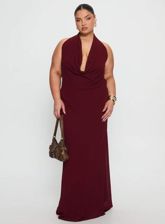 Vortexa Halter Maxi Dress Currant Curve