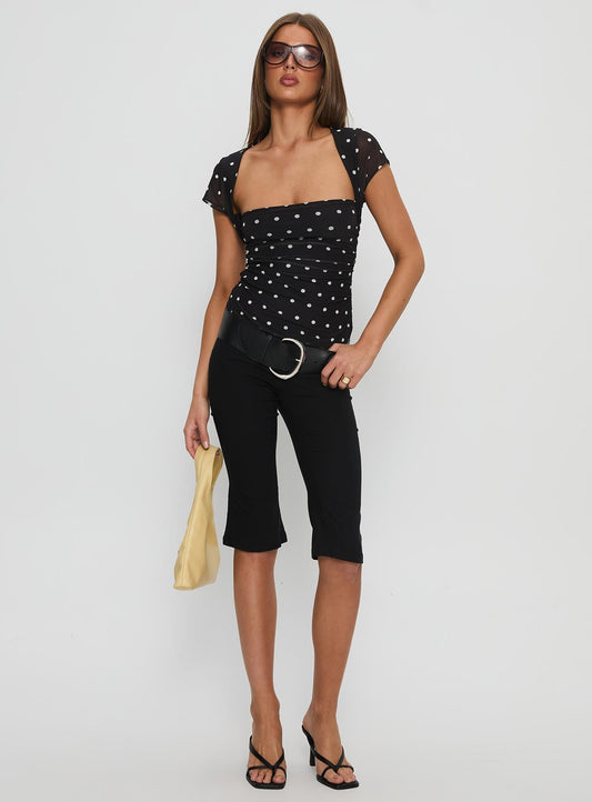 Dannica Cinched Short Sleeve Shirt Cream Polka