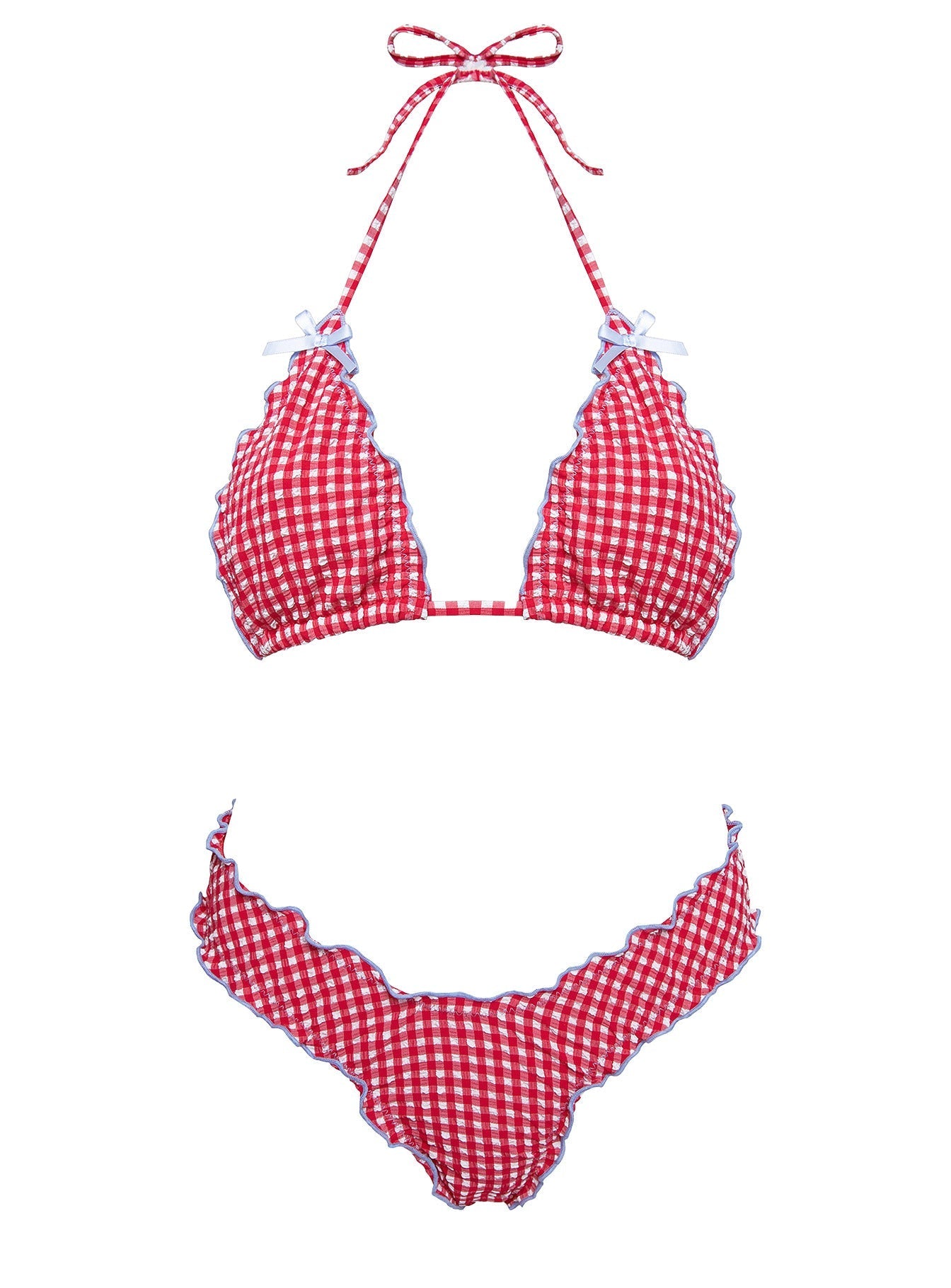 Kathrine High Cut Cheeky Bikini Bottoms Red Gingham