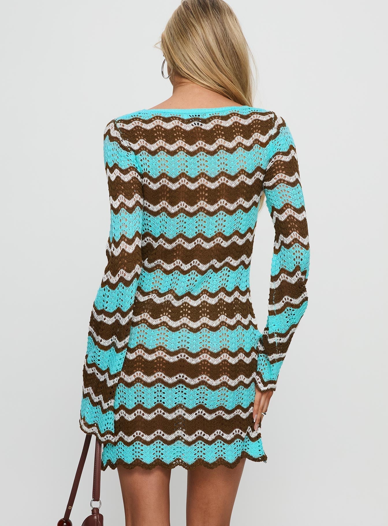 Suka Long Sleeve Knit Mini Dress Brown / Blue